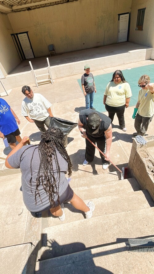 We finished painting the exterior walls of the church and got to do some more cleaning projects around. After we were done with our service projects we had the opportunity to bless some family's in the community by praying over them and food distribution. When we got back to the church we started to prepare VBS for the kids we had a great time getting to know them a little bit more! We got to teach them about Jesus and the storm.