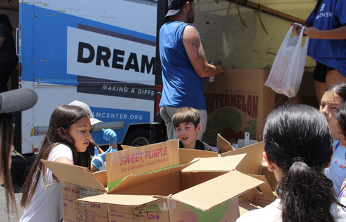 We had another powerful day here at the Dream Center! Our group had the opportunity to serve with the Dream Center’s mobile food bank during our morning and evening outreaches. They deliver everything from fresh produce to canned goods directly to people in several communities.Our first stop this morning was incredible as we watched our kids step up and take charge of passing out groceries. They split our team into two, so we could double the impact in the community.One man stood out to us as many people came through the line. Seeing his smile as he received food was an impactful moment, and the kids were just as excited to bless him with food! The joy of the Lord was present! In the afternoon, we went to two more neighborhoods. The kids’ confidence from the morning doubled! They talked to more people, served enthusiastically, and served even more vital resources! The Dream Center teams commented that the kids’ helping hands were a blessing as they do this work daily.The food trucks have been our team’s favorite service project so far, and we are excited to continue serving in LA tomorrow! Would you pray for our team tomorrow? We are entering our second-to-last day and want to finish the week just as strong as we started.